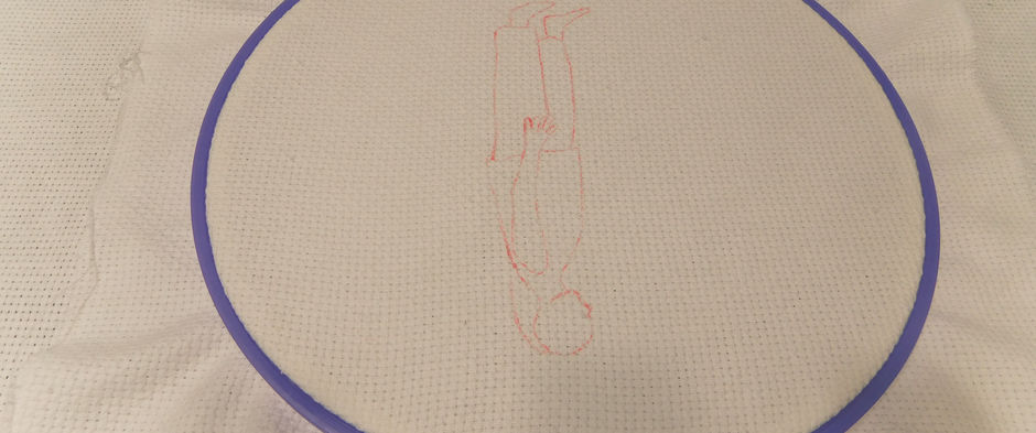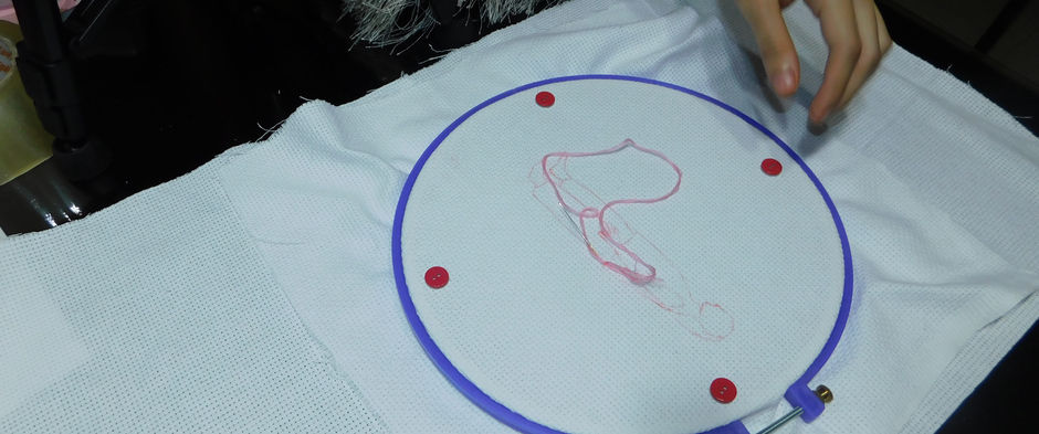 La coreografía es más sutil y suave, yo lo relaciono como si fuera una rosa cayendo al piso con mucha lentitud. Quería un material que diera la sensación de ser suave y sutil por lo que opte en un principio por: papel origami y Bordado. Para al final, escoger Bordado ya que me parece más interesante y me parecía coherente con lo que la coreografía me trasmite.